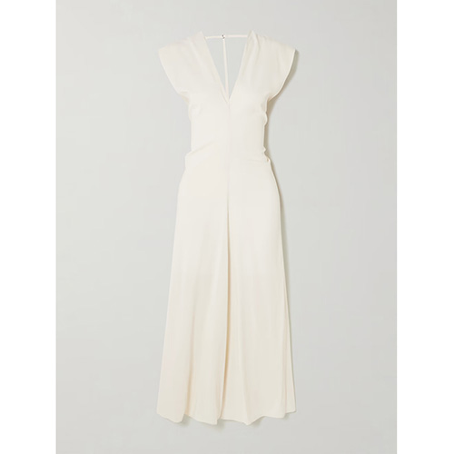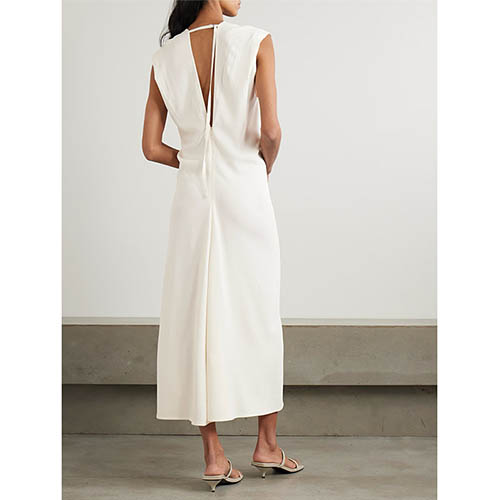 Hottags: Ivoorkleurige mouwloze midi-jurk met diepe V-vorm